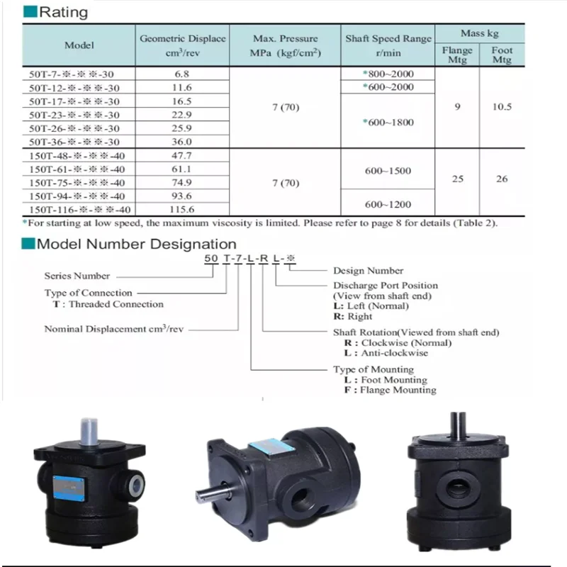 50T Series Low Noise Vane Pump | 50T-23, 50T-36 | High Pressure Hydraulic