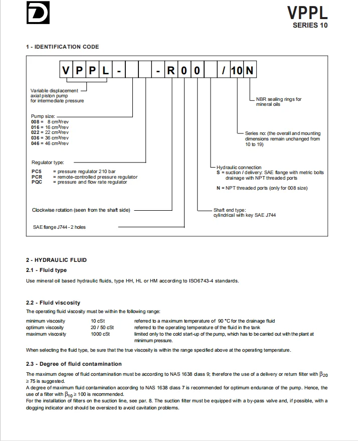 Duplomatic VPPL Series | VPPL-008, VPPL-016, VPPL-022, VPPL-046 | VPPL-008PC5-R00B/20N | Variable Piston Pump