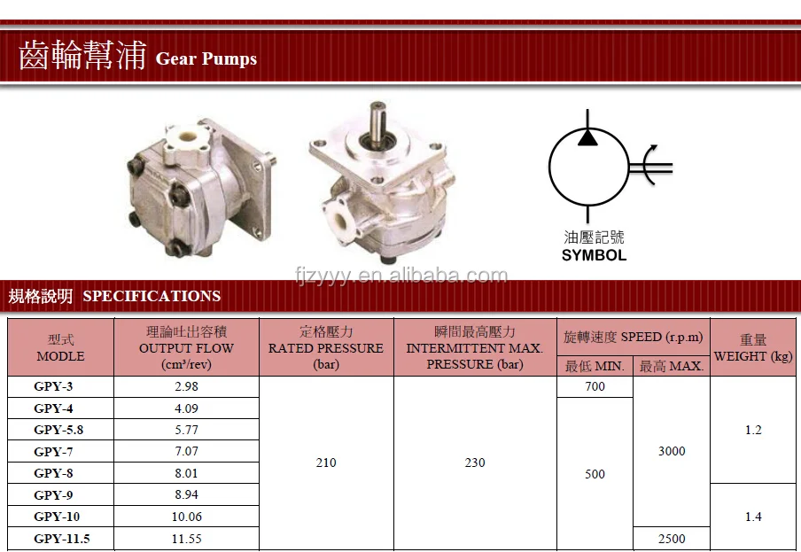 GPYZ Series Hydraulic Gear Pump | GPYZ3R, GPYZ4R, GPYZ7R, GPYZ11.5R | High-Pressure Mini Pump