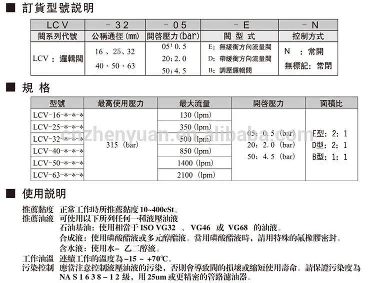 LCV Logic Cartridge Valve | LCV-32-E LCV-32-D LCV-32-B | Size 16 to 63 | Two-Way Hydraulic Cartridge Valve