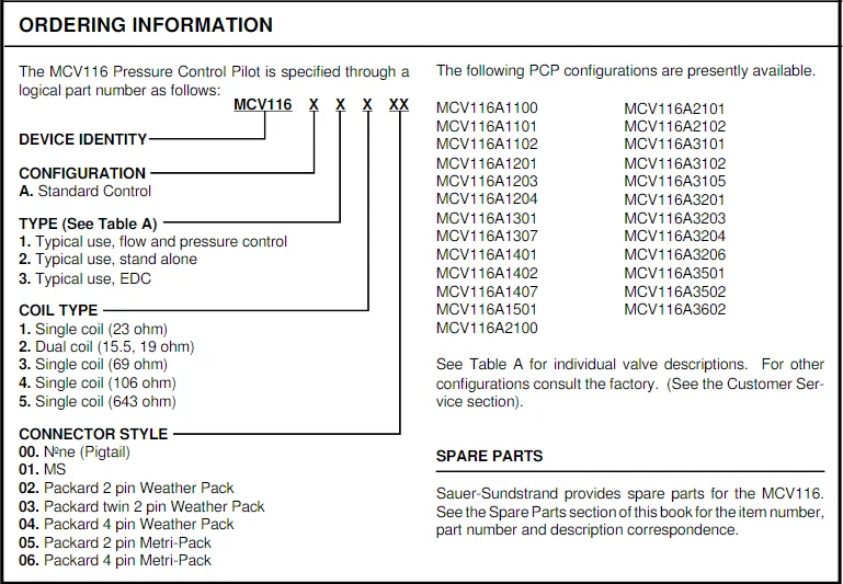• MCV116A3203 / 3204: Optimized for specific flow curves or electrical impedance, matching various pump displacement requirements.
