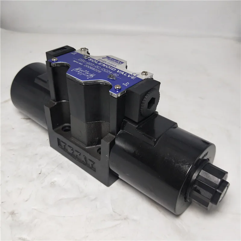 Product Overview: The DSV series is a range of highly reliable and cost-effective solenoid directional control valves, engineered for industrial hydraulic systems. Featuring a direct-operated spool design, these valves comply with ISO 4401 standards and are available in G02 (NG6) and G03 (NG10) nominal sizes. The core utilizes wet-pin solenoid technology, where the armature is immersed in oil to ensure smooth switching, low operational noise, and the elimination of dynamic seal leakage. The DSV series is a staple in injection molding machines, small presses, and diverse industrial automation units.
