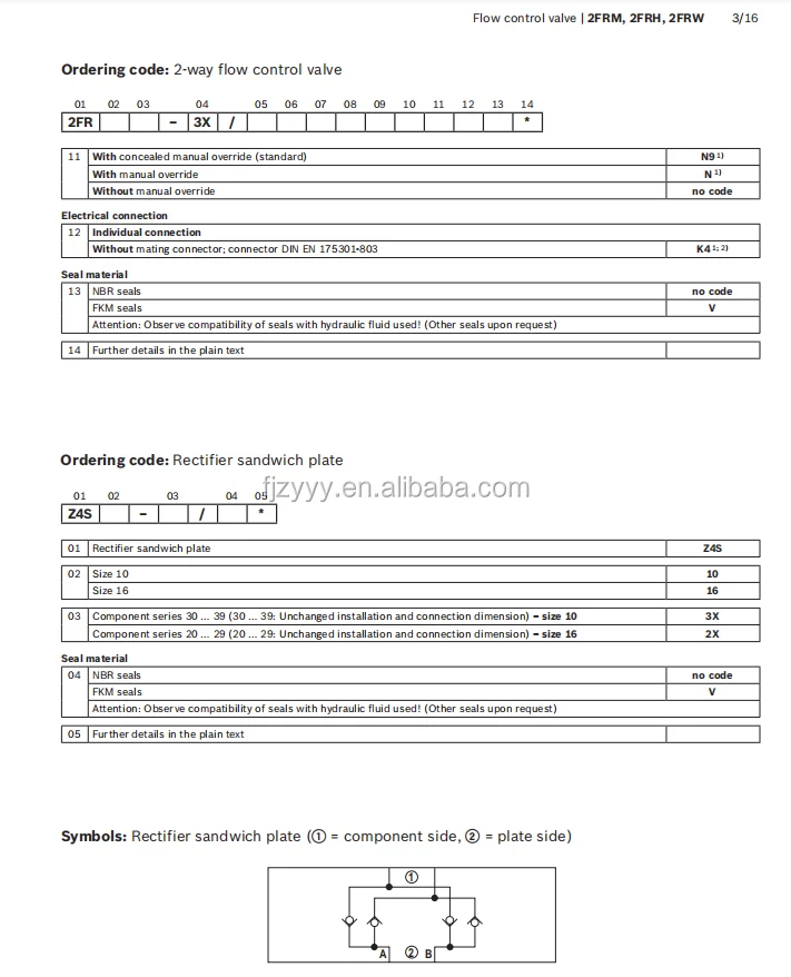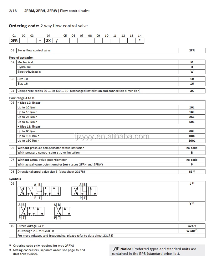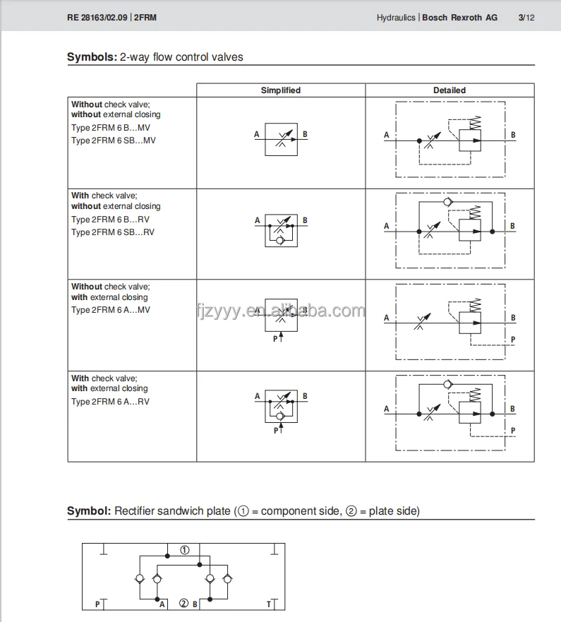 2FRM10-3X/50L: Nominal Size 10, subplate mounting, rated adjustable flow up to 50 L/min.