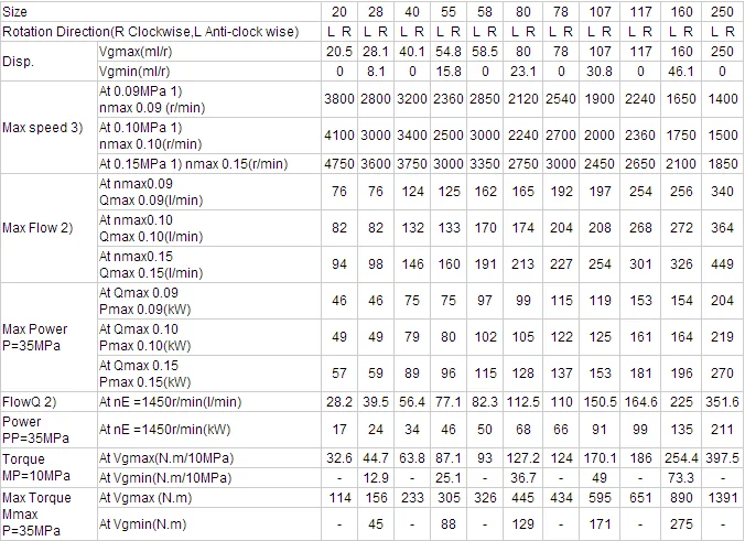 Displacement Range: 55 cm³/rev, 250 cm³/rev.