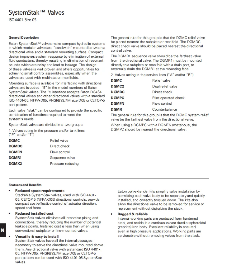 Vickers DGMPC-7 Series Modular Pilot Operated Check Valves