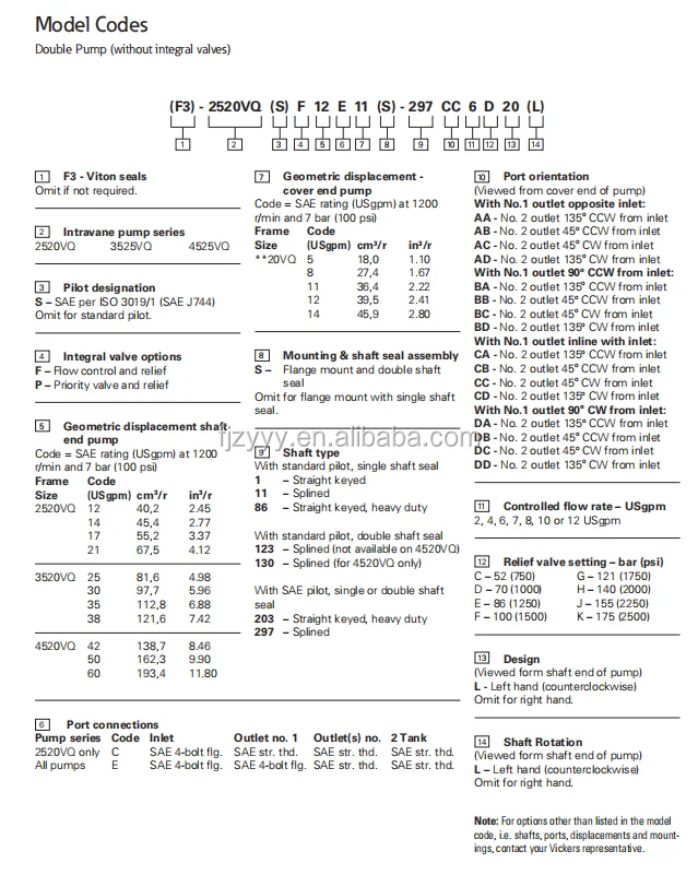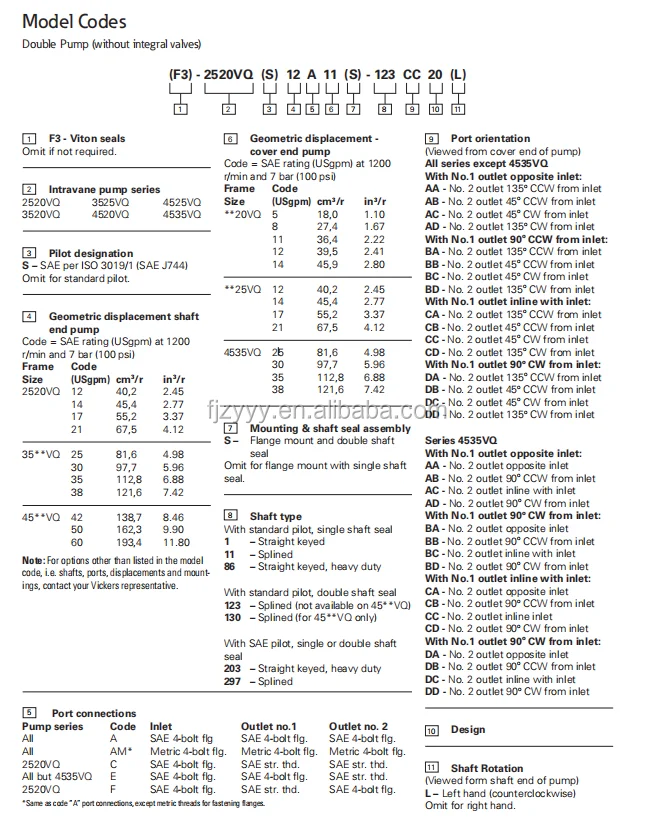 Vickers Type 2520VQ Series Double Vane Pump | 2520VQ12, 2520VQ17, 2520VQ21